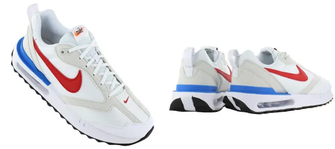 Теперь к айтемам. Первый лот – белые Nike Air Max Dawn. Тут вам и винтажный силуэт, и фирменный пузырь Air-Sole – воздушная подушка, встроенная в межподошву и отвечающая за амортизацию и комфорт во время ходьбы. Логотип Nike расположился не только на боковой части кроссовок, но и на носке – тех, кто любит мелкие детали, наверняка порадует такой подход.