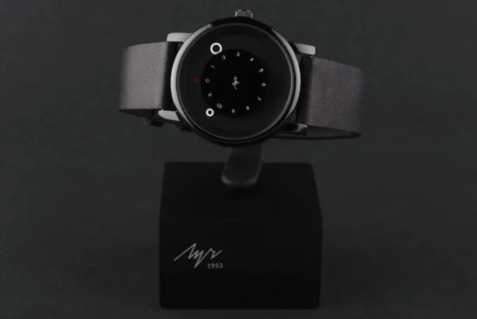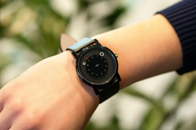 Серия часов называется DOT («точка»), и кажется, что часы состоят из многочисленных точек: циферблат, стрелки, цифра 12. Аксессуар привлекает своей концептуальностью: хочется долго смотреть, как по циферблату кружатся стрелки. Корпус часов создан из нержавеющей стали, в комплекте есть ремешок из натуральной кожи.