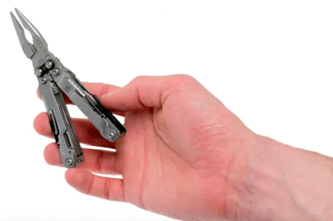 Фишка мультитула — его габариты. Идеально поместится в небольшом отделении рюкзака или кармане. Тут есть пассатижи, два ножа, небольшие ножницы, крестовая и плоская отвертки, кусачки и прочие инструменты. Имеет фирменный рычаг SOG, благодаря чему инструменты открываются и закрываются очень плавно.