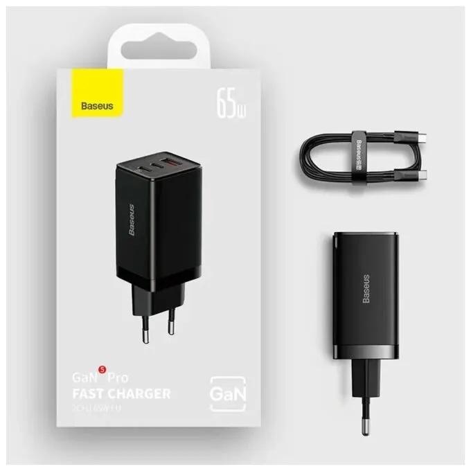 Зарядник Baseus GaN5 Pro предлагает три порта с поддержкой нескольких стандартов быстрой зарядки, максимальную мощность 65 Вт и относительно небольшой корпус. В отличие от более дешевых адаптеров, тут предусмотрена технология защиты от перегрева, перенапряжения и короткого замыкания. Главное, что адаптер сразу идёт с европейской вилкой и шаманить с переходниками не придётся.