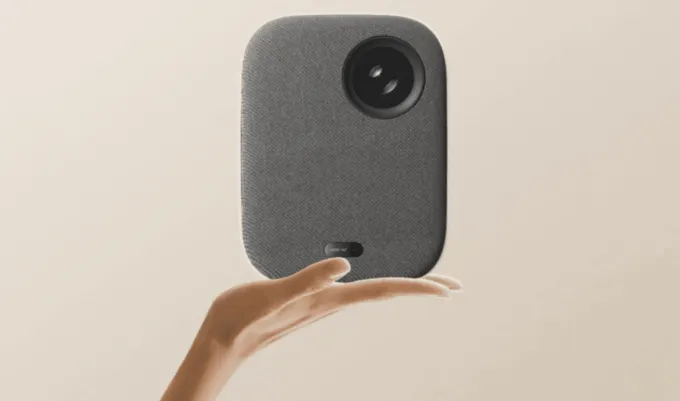 Модель имеет компактный квадратный корпус. Устройство похоже на умную колонку, но нет — спереди можно заметить специфический глазок проектора. Гаджет может выводить картинку в разрешении 1080 пикселей с поддержкой HDR10+.