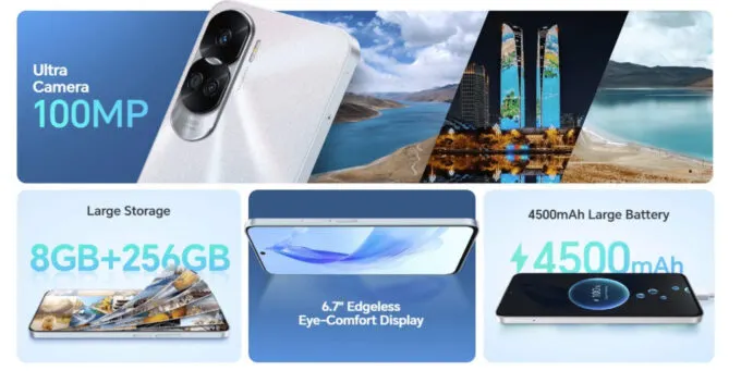 Сперва о модели. 90 Lite — недорогой телефон, вышедший летом 2023 года. Устройство получило 6,7-дюймовый IPS-экран разрешением 2388 х 1080 пикселей с поддержкой 90 Гц. На передней панели находится 16-мегапиксельная фронтальная камера, сзади — камера с ведущим сенсором на 100 мегапикселей и пара объективов на 5 и 2 мегапикселей. Аппарат умеет снимать видео в 1080 fps.