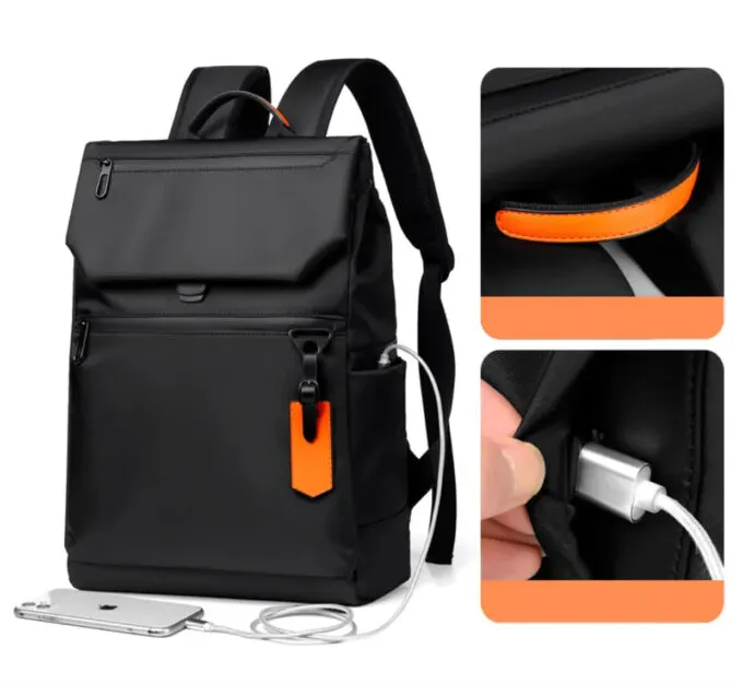 Молодежный, оформленный в сдержанной расцветке с оранжевыми вставками рюкзак. Выглядит солидно, но просто; сшит из водонепроницаемой ткани. Есть пара наружных отделений под мелочевку и достаточно большое основное отделение — туда можно положить ноутбук и прочие ценные вещи. Присутствует прорезь для USB-кабеля, чтобы на ходу заряжать смартфон и другие гаджеты. Понравилось внимание к деталям: все молнии прорезинены, чтобы внутрь не попала вода или снег.