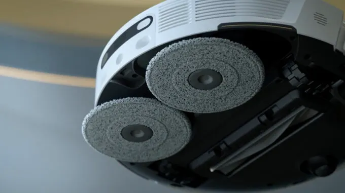 С пылью проблем нет. Пылесос оснащен системой Vormax, которая обеспечивает мощность всасывания в 7000 Па. Но самое главное, что Dreame Bot охватывает всю комнату, а не только ее сердцевину. Подъезжая к плинтусам, робот выдвигает швабру для тщательной очистки пространства вдоль стен. То же касается и ножек стола. Это магический момент: вам не нужно проводить дополнительную уборку самостоятельно.