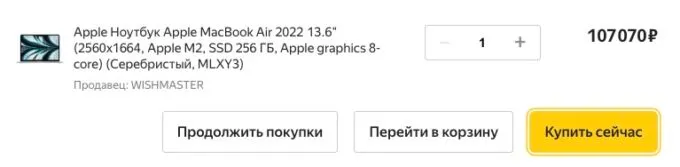 Прямо сейчас на Яндекс Маркете за базовый MacBook Air с M2 просят всего 107 070 рублей. За такие деньги его однозначно стоит брать.