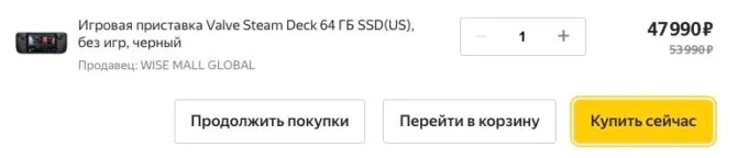 Если вы давно присматривались к этой консоли, то сейчас — лучшее время для её покупки. На Яндекс Маркете базовый Steam Deck можно урвать всего за 47 990 рублей, а с кэшбеком некоторых банков вы можете отлично сэкономить.