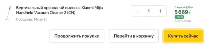 Обычно за Xiaomi Mijia Handheld Vacuum Cleaner 2 просят 10 косарей, но сейчас его можно урвать на Яндекс Маркете за смешные 5726 рублей и кэшбекнуть под 700 рублей в некоторых банках.