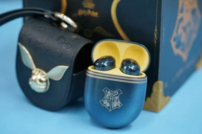 Лимитка поставляется в огромной коробке со стикерами по фильмам о Гарри Поттере, кожаным чехлом с золотым снитчем, эксклюзивным ремешком, кабелем USB-C и сменными насадками в нескольких размерах. Отдельное внимание дизайнеры уделили мелочам, например, на кейсе красуется герб школы волшебников Хогвартс, а на самих ушках — «Авада Кедавра» или шрам Поттера в виде молнии. Цветовая гамма всего комплекта тут максимально приятная.