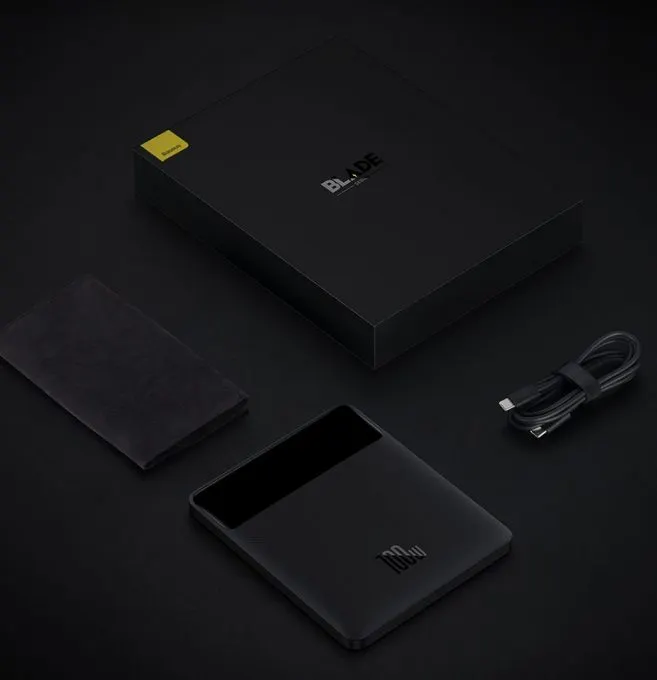 Флагманский пауэрбанк Baseus Blade — элита в мире внешних аккумуляторов. Он предлагает впечатляющую мощность в 100 Вт, благодаря которой от него можно запитать вообще всё. При этом он отличается от типичных «банок» необычным плоским дизайном.
