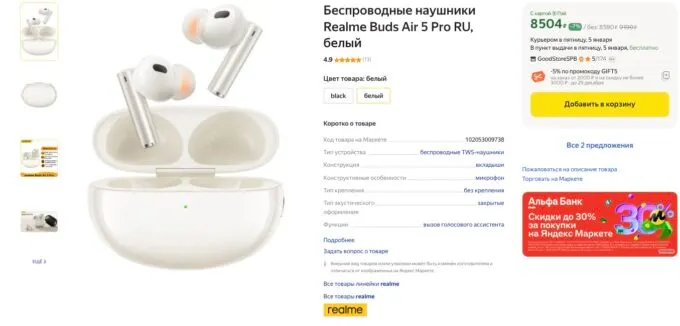 «Наушники классные, шумодав – отпад». Флагманские TWS от realme мощно подешевели на Маркете