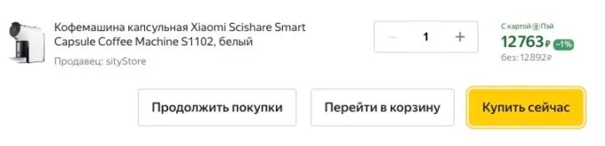 Обычно кофемашину Xiaomi Scishare Smart Capsule Coffee Machine S1102 просят под 15 косарей, но сейчас на Яндекс Маркете её можно купить за 12 900 рублей, а с кэшбеком она обойдётся около 11 тысяч рублей.
