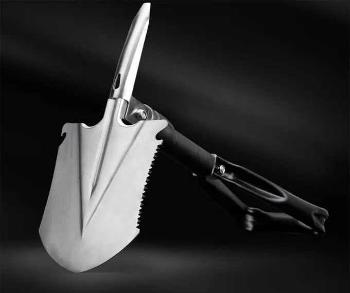 Сама лопата сделана из нержавеющей стали 2Cr13, а складной черенок — из авиационного алюминиевого сплава, который выдерживает нагрузку до 1000 кг. Самый кайф, что вещь весит всего 800 граммов. Её вполне можно таскать с собой по всему городу в небольшой сумке. Такой девайс станет незаменимым помощником не только для автовладельцев, но и на даче или в походе.