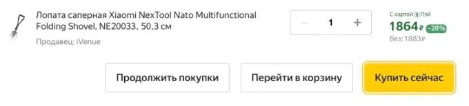 Сейчас многофункциональную складную лопату Xiaomi NexTool Foldable Shovel можно выцепить на Яндекс Маркете всего за 1883 рубля. Не забывайте также о кэшбеках, которые можно получить от некоторых банков за покупки на этой платформе.