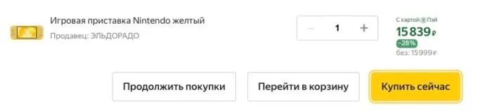 Сейчас на Яндекс Маркете консоль Nintendo Switch Lite можно урвать от 15 999 рублей и кэшбекнуть 1600 рублей при оплате картами некоторых банков.