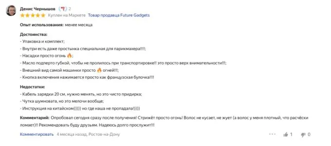 Пожалуй, единственный минус этой машинки — глянцевая часть корпуса, которая со временем покроется царапинами. Однако для мужчин это не должно быть слишком критичным.