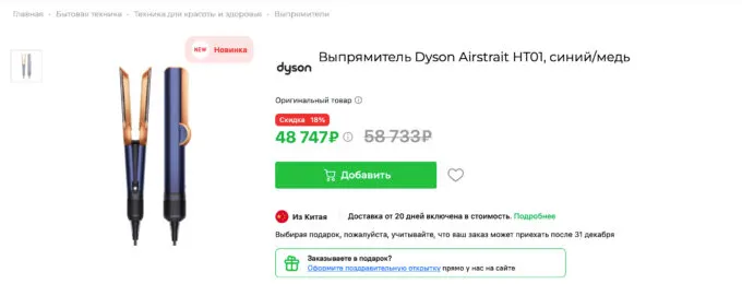 Но если вам реально нужен Dyson Airstrait, мы бы всё же советовали поторопиться с оформлением заказа, пока не начался предновогодний ажиотаж с повышенным спросом и плавающими ценами. Поэтому выгодным предложением от CDEK.Shopping точно надо пользоваться — ловите волшебную ссылку.