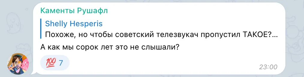 Неужели Леонтьев действительно выругался в ролике для советского телевидения, и этого никто не заметил? «Если правда, то Валерий Леонтьев — самый главный панк на нашей эстраде», — заявил музыкальный критик и автор телеграм-канала «Русский шаффл» Олег Кармунин. Олег признался, что не сможет больше слушать эту песню по-старому.