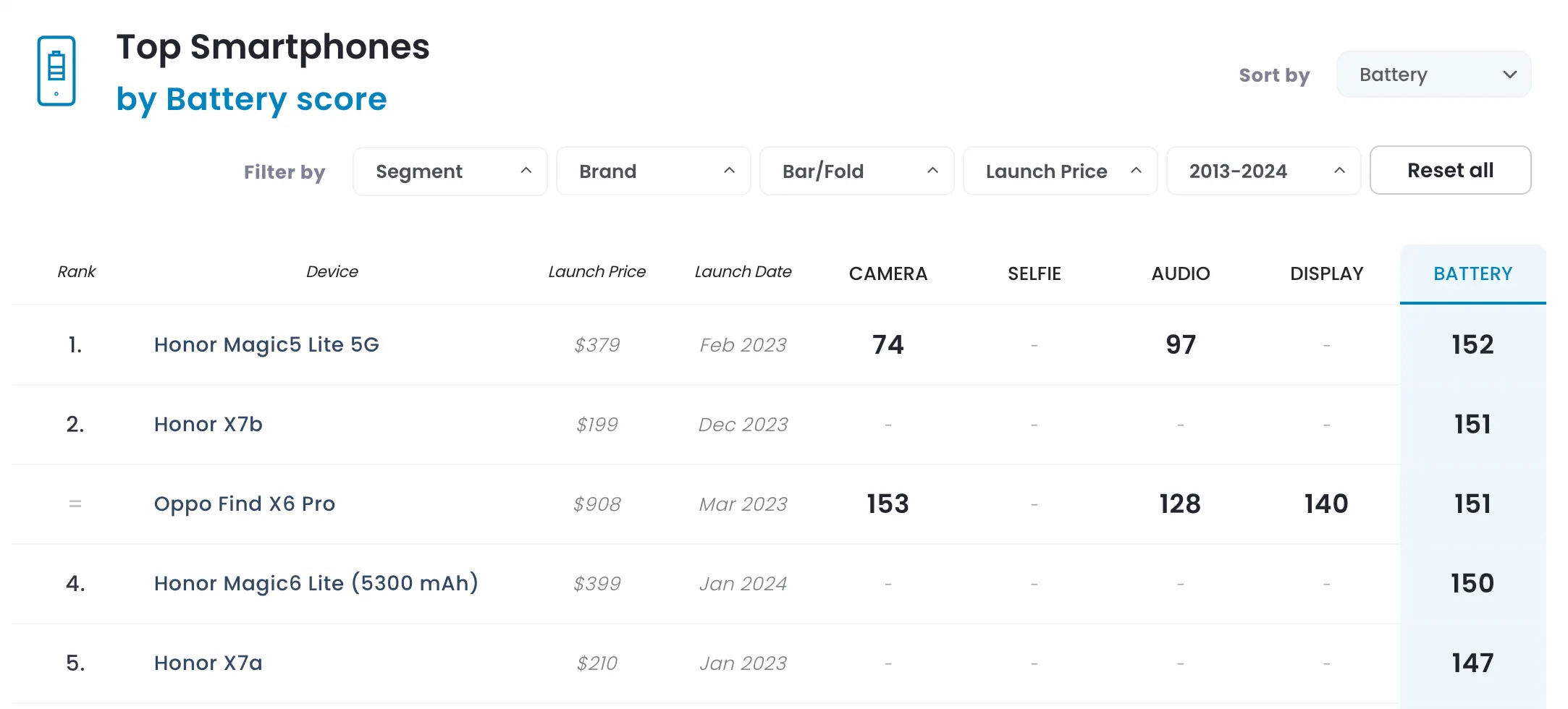 В сводном топе Magic6 Lite занял четвертое место — его опередили Oppo Find X6 Pro и Honor X7b. А лидером стал предыдущий девайс серии Magic5 Lite.