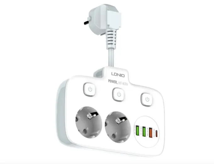 У известной китайской компании LDNIO есть сетевой разветвитель SE2435. Эта штука позволит подключить к одной сети несколько приборов и решить одну из проблем многих домов и квартир — ничтожное количество розеток.