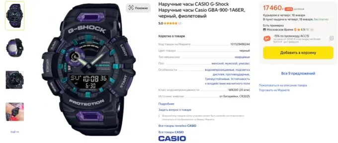 Обычно за Casio G-Shock GBA-900 просят под 20 косарей, но сейчас на Яндекс Маркете их можно забрать за 14 841 рубль по промокоду ACC15. Также вы можете срубить нехилый кэшбек при оплате картами некоторых банков.