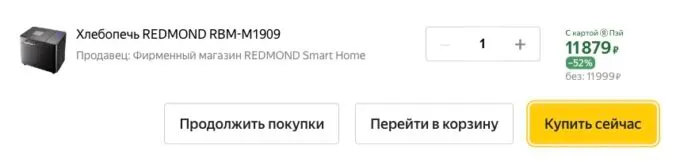 Обычно за Redmond RBM-M1909 просят под 25 тысяч рублей, но сейчас на Яндекс Маркете топовую хлебопечь можно урвать за 11 999 рублей. А с кэшбеками некоторых банков вы сможете сэкономить ещё пару косарей.