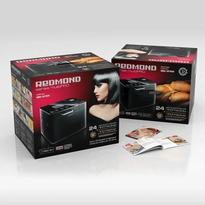 Теперь к нашему лоту. Redmond RBM-M1909 — флагманская хлебопечь с лаконичным дизайном, который отлично впишется в интерьер любой кухни. Корпус этой модели почти полностью чёрный, благодаря чему девайс выглядит дороже своего прайса.