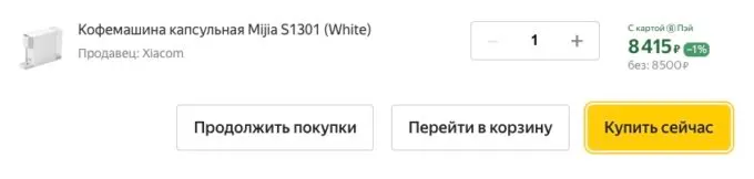 Сейчас на Яндекс Маркете самую доступную кофемашину Xiaomi Mijia Capsule Coffee Machine S1301 можно купить за 8500 рублей и кэшбекнуть до 30% при оплате картами некоторых банков.