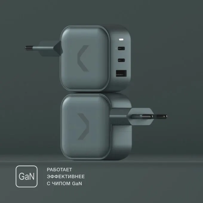 На корпусе расположены два порта USB-C и один USB-A. Внутри размещены датчики контроля температуры и защиты от короткого замыкания. С таким адаптером вы сможете быстро подзарядить MacBook, iPhone и AirPods. Стоит от от 2870 рублей.