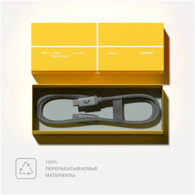 Вторая полезная вещица — вечный кабель Commo Range. Как правило, кабелей много не бывает — они то теряются, то перетираются. От последней проблемы кабели Commo Range защищены качественной оплёткой. Яндекс заявляет, что он спокойно выдержит до 10 тысяч сгибаний.