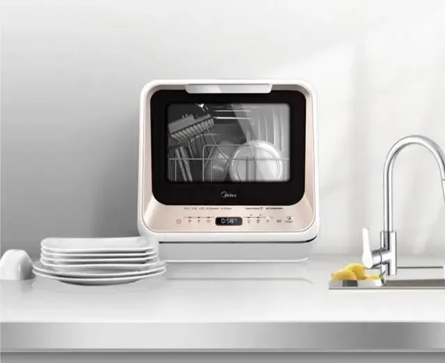 Midea MCFD42900GMINI-i — компактный девайс, который внешне выглядит как ретрокомпьютер Apple iMac G3. На деле это мощная посудомоечная машина с подключением к Wi-Fi и интеграцией в систему умного дома. Такой гаджет отлично впишется в интерьер любой кухни и не займёт много места.