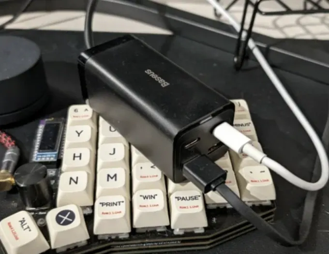 Он не очень современный, но качественный и проверенный годами эксплуатации. У девайса есть четыре порта, обеспечивающие быструю зарядку (по паре USB-C и USB-A), а также встроенный кабель для подключения к розетке. В результате блок питания не торчит в стене, а лежит на столе или любой другой ровной поверхности.