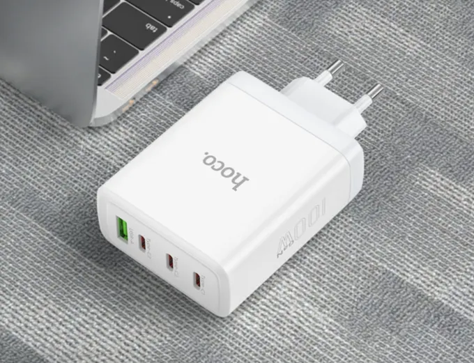 Относительно доступный адаптер, имеющий поддержку 100 Вт и одновременной зарядки четырех устройств (3 USB-C и 1 USB-A). При использовании греется довольно сильно, но при этом продолжает выполнять свою работу. Есть поддержка Power Delivery 3.0, Quick Charge (QC) 3.0 и 4.0, FCP (Fast Charging Protocol), AFC (Adaptive Fast Charging) и SCP (Super Charge Pump).