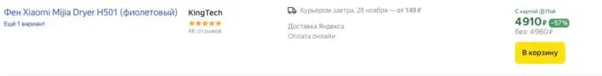 Обычно за Mijia Dryer H501 просят под 8 косарей, но сейчас на Яндекс Маркете топовый фен Xiaomi можно урвать за 4960 рублей, а с кэшбеками некоторых банков он обойдётся ещё дешевле.