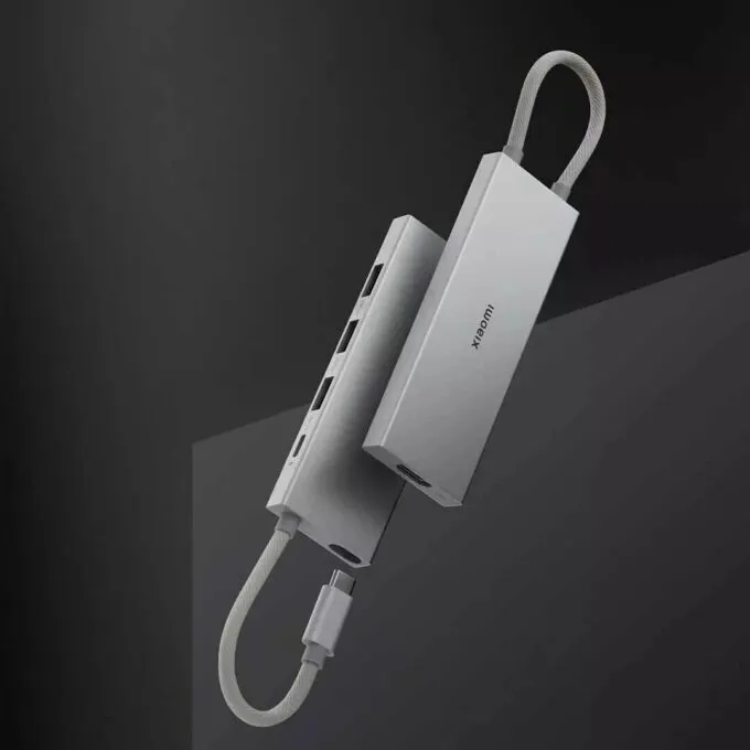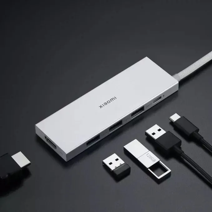 Лот от Xiaomi получил металлический корпус серебристого цвета и кабель в оплётке. За довольно скромный прайс вы получаете мощный хаб, который прослужит не один год. Плюс он лучше справляется с рассеиванием тепла, в отличие от пластиковых концентраторов, которые под нагрузкой начинают таять.