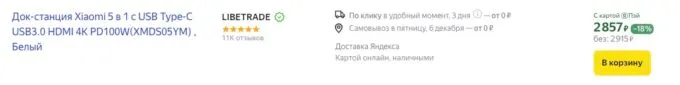 Прямо сейчас на Яндекс Маркете стильную док-станцию Xiaomi Docking Station можно купить всего за 2915 рублей. Также не забывайте про бонусы и кэшбеки от банков, который помогут сэкономить ещё больше.
