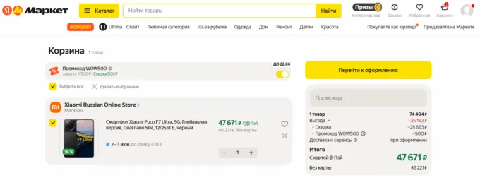 Заинтересовало предложение? Сейчас Xiaomi Poco F7 Ultra сливают на Яндекс.Маркете всего от 48 221 рубля по промокоду WOW500. Стоит отметить, что цены могут варьироваться в зависимости от региона — нужно переключиться на столицу и проверить, можно ли оформить доставку.