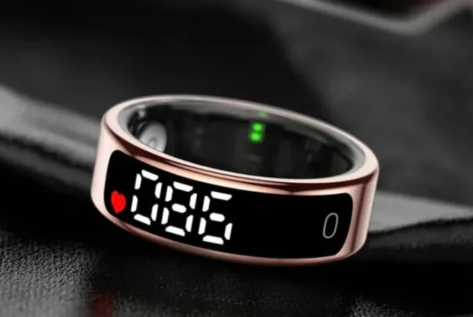 Переходим к ультрадешевым вариантам. Это кольцо имеет датчики PPG для мониторинга пульса и SpO2, термодатчик для измерения температуры кожи и акселерометр, который фиксирует активность пользователя. И у него есть экран! На одной зарядке устройство работает до 10 дней. За точность, мягко говоря, не ручаемся.