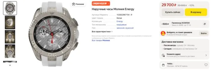 Роскошная модель от российского бренда «Молния» — Energy Z60. Это лёгкие часы с титановым корпусом и строгим дизайном. Хронограф дополняется окошком даты, индикатором дня недели и секундомером. Поворотный безель позволяет замерять интервалы, вести обратный отсчёт и предлагает навигацию по сторонам света.