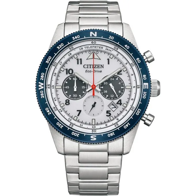 Часы Citizen Eco-Drive CA4554-84H сочетают все лучшие элементы японской философии: минимализм, точность и технологичность. Система Eco-Drive позволяет питаться от солнечной энергии — батарейку менять не нужно, заряда хватает на 270 дней. Хронограф работает с точностью до часа, есть телеметрическая шкала, поддержка 12- и 24-часового формата, а также индикация уровня заряда.