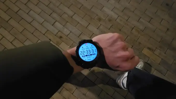 У Amazfit T-Rex 3 Pro очень яркий экран — до 3000 нит. Дисплей слегка утоплен в корпус и защищен сапфировым стеклом. По кругу расположены 4 физические кнопки — ими удобно пользоваться во время тренировки, когда пальцы потные и скользкие.
