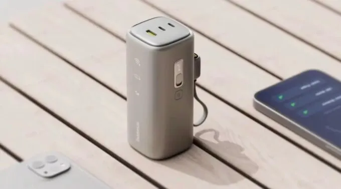 EnerGeek GX11 имеет пластиковый прямоугольный корпус. У него два порта USB-C и один разъем USB-A. Аксессуар поддерживает быструю зарядку 67 Вт и протоколы Power Delivery (PD) и Quick Charge (QC). Еще есть встроенный кабель USB-C, который также выполняет функцию шнурка для переноса.