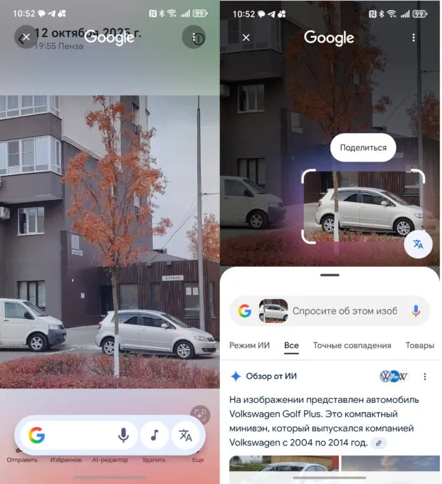 Фишка работает прекрасно и экономит время. Иногда быстрее и удобнее что-то показать нейросети вместо того, чтобы формулировать запрос в поисковике.