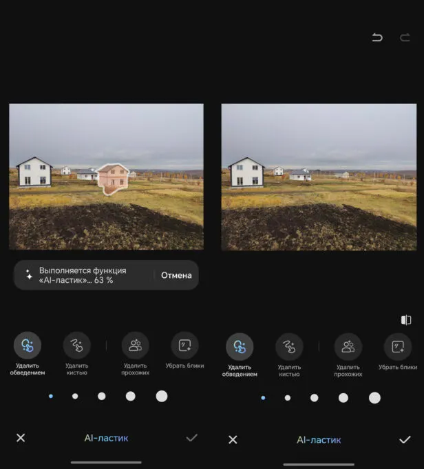 Наконец, нейросети есть в приложении камеры. Ластиком можно выделять объекты на фото — ИИ удалит их и заполнит фон.