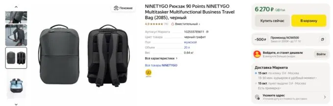 Сейчас стильный рюкзак Xiaomi NinetyGo Multitasker Business Travel Backpack можно урвать на Яндекс Маркете за 6270 рублей. А с кэшбеками некоторых банков он обойдётся ещё дешевле.