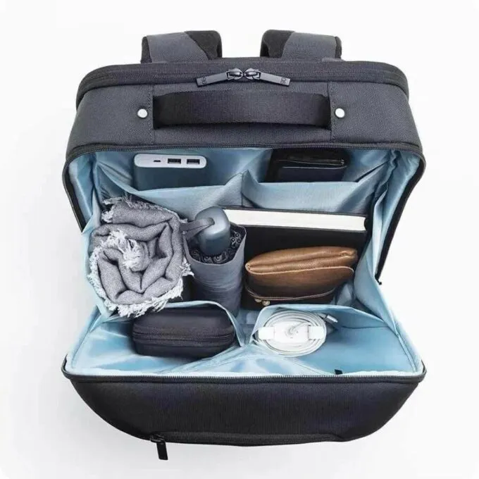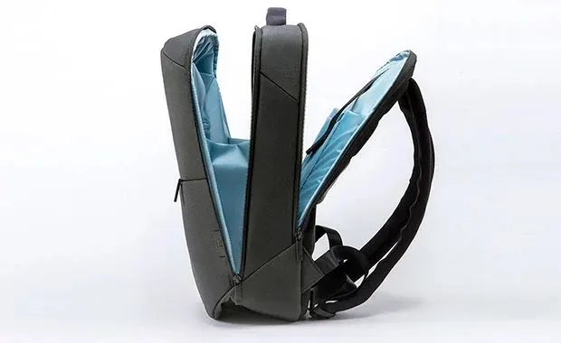 Снаружи у NinetyGo Multitasker расположены секции для мелочей и аксессуаров. Плюс ближе к спине есть скрытый магнитный карман для документов и денег. Ещё тут предусмотрено крепление на чемодан и боковая ручка, которая превращает рюкзак в аккуратный деловой кейс. Лямки и спинка сделаны из дышащего материала, поэтому плечи и спина под ними не потеют. Кроме того, эта сумка Xiaomi легко выдерживает дождь или случайно пролитый кофе. В целом это надёжный спутник как для офиса или учёбы, так и для коротких командировок.