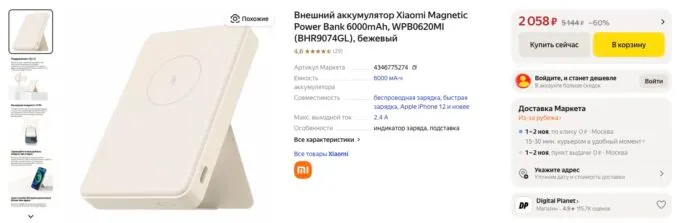 Прямо сейчас на Яндекс Маркете отличный внешний аккумулятор Xiaomi Magnetic Power Bank можно купить всего за 2058 рублей. Также не забывайте, что многие банки готовы отсыпать кэшбек с покупок на этой платформе.