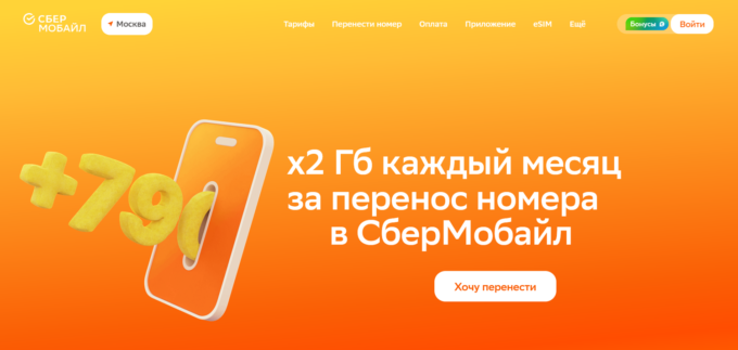 За перенос номера оператор удвоит ваши гигабайты. Например, если вы выбрали тариф с 20 Гбайт трафика, то Сбер накинет еще двадцатку.
