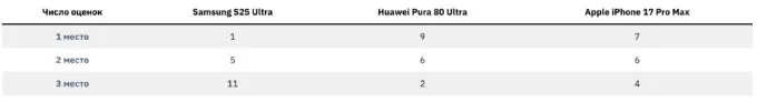 Девайс 9 раз оказывался на первом месте, 6 — на втором, 2 — на третьем. На второй позиции оказался iPhone 17 Pro Max, который не сильно отстал от победителя: 7 первых и 6 вторых мест.