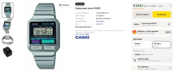 Обычно за Casio Vintage просят под 8 тысяч, но сейчас их можно урвать на Яндекс Маркете всего за 6343 рублей. А с кэшбеками некоторых банков они обойдутся ещё дешевле.