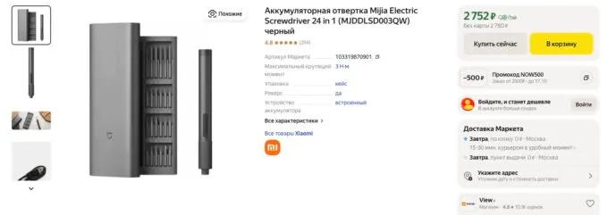 Прямо сейчас на Яндекс Маркете мощную отвёртку Xiaomi Mijia Electric Screwdriver можно урвать за 2752 рубля. Также не забывайте, что с кэшбеками некоторых банков можно сэкономить ещё пару сотен рублей.